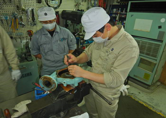 機関室内実習風景