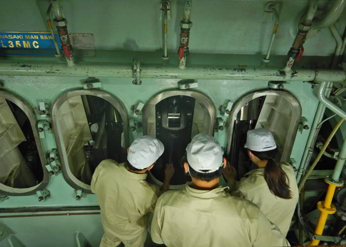 主機クランク点検の様子