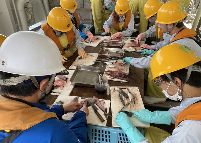 漁獲した魚を洋上で調理し、保存技術を学びました