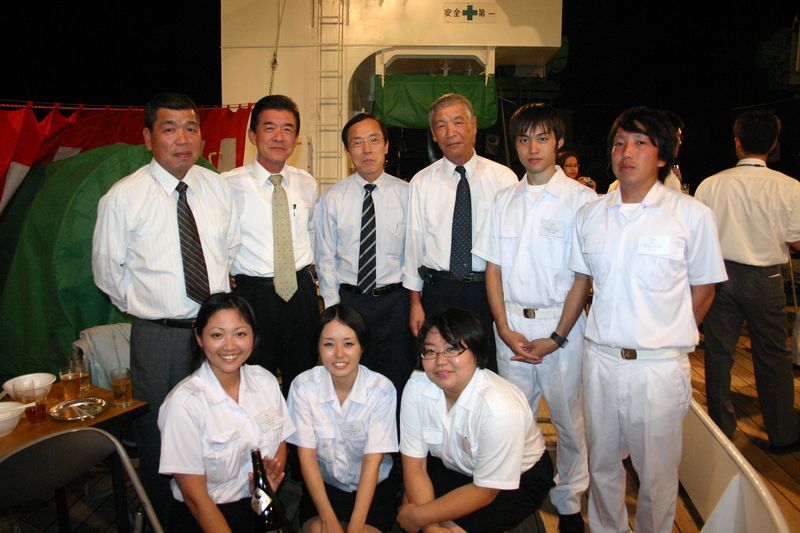 本船の船尾甲板上にて