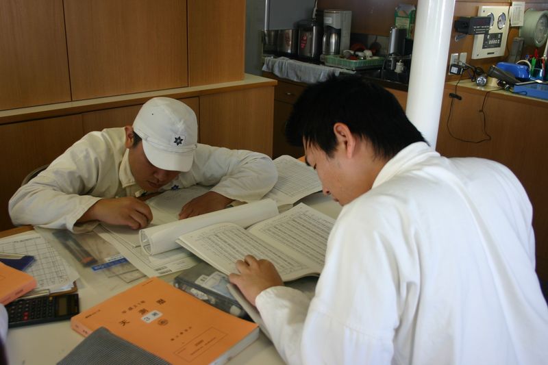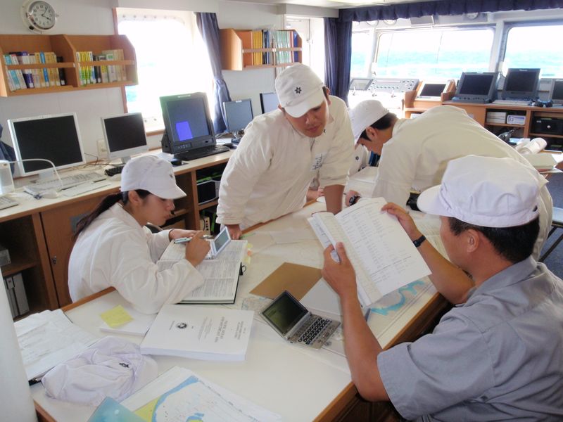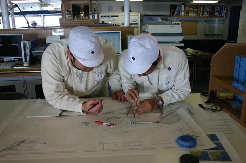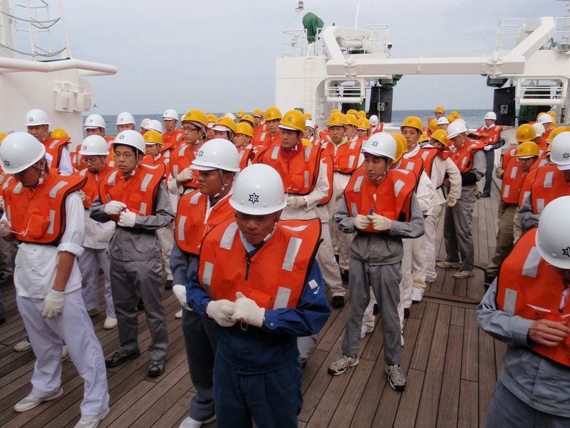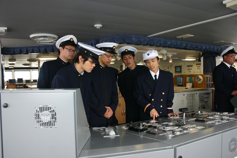 出港配置につく機械科学生