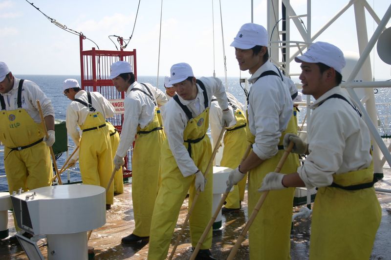 入港前のデッキウォッシュ