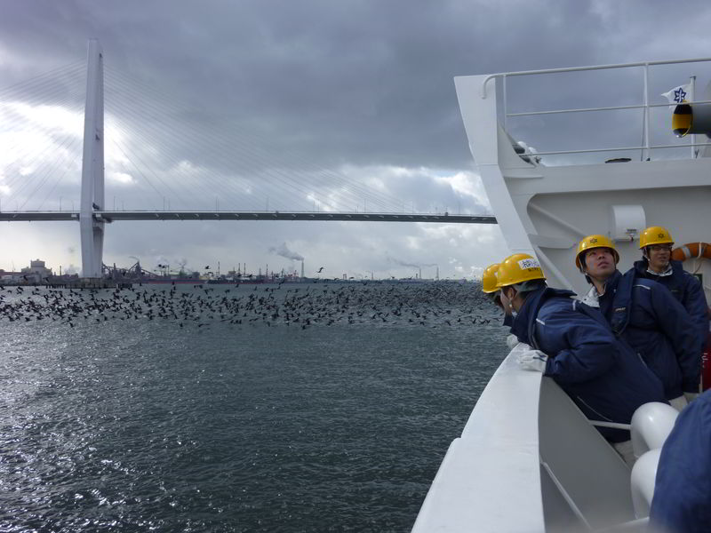 名古屋出港時、海鵜の群れ