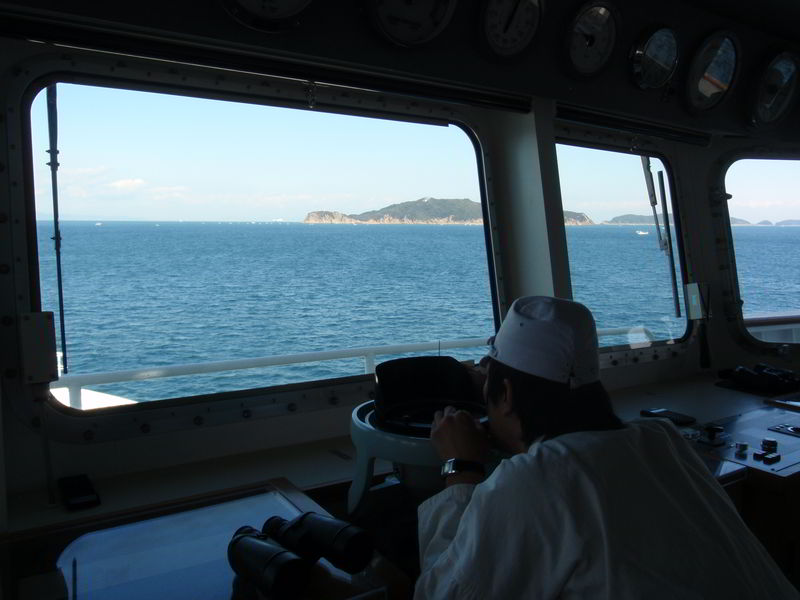 友ヶ島水道にて操船する実習生