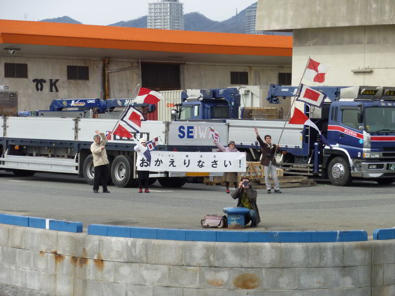 2月14日 神戸入港歓迎を受ける