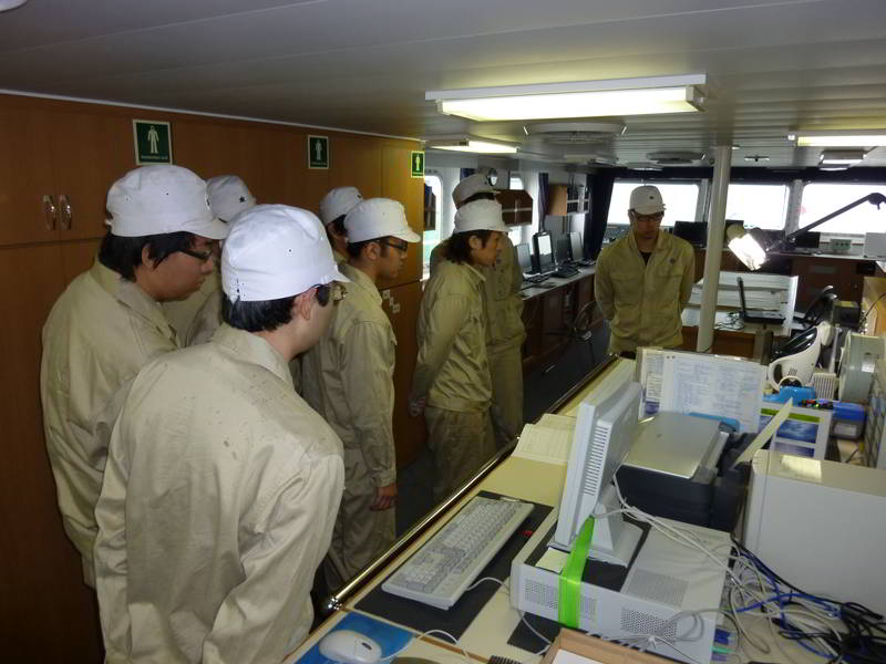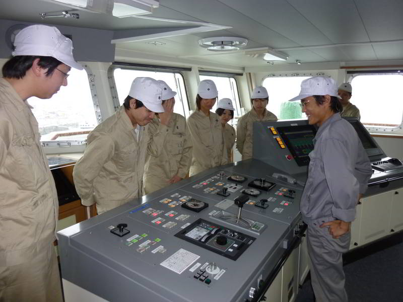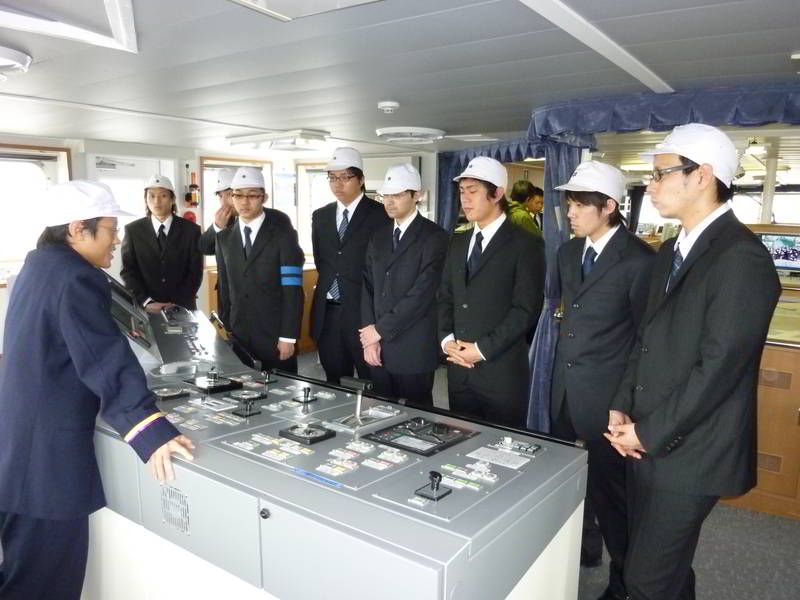 機関制御盤の説明を受ける