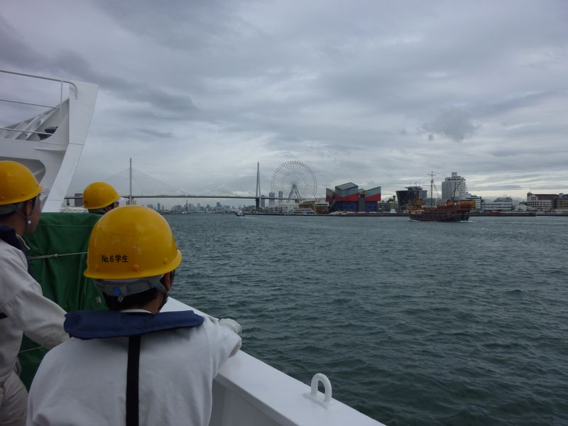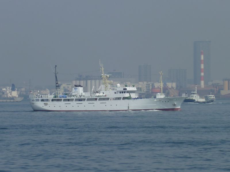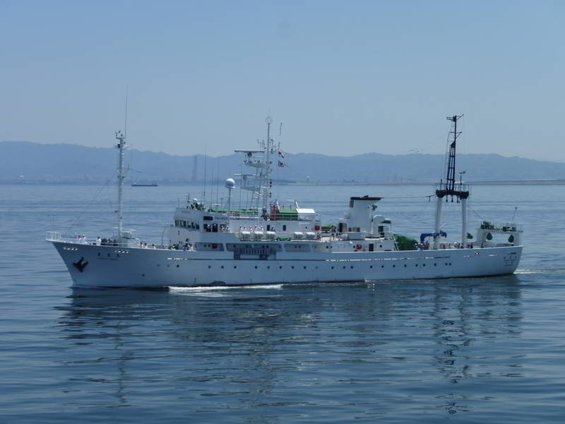 大阪に入港する天鷹丸と関空沖で遭遇