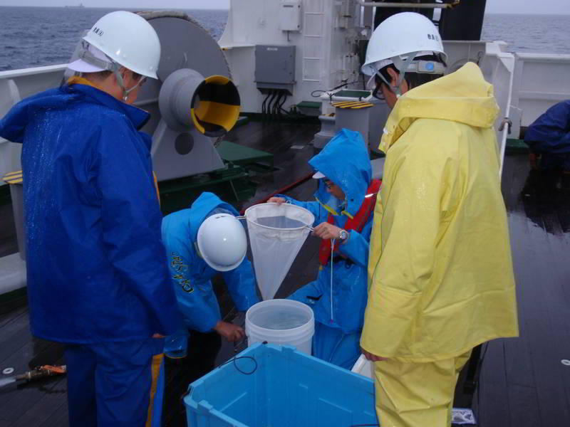 海洋観測中の調査員