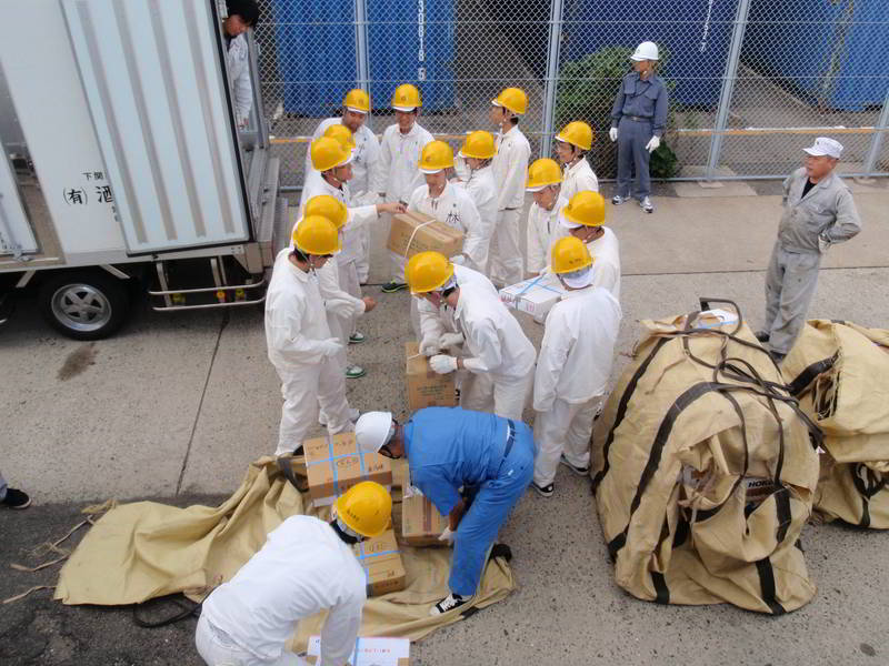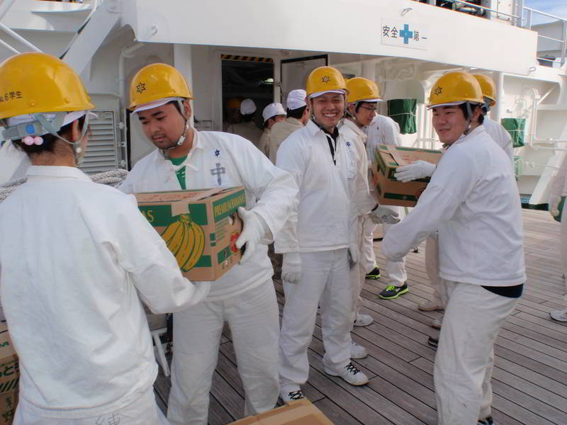 手渡しで60日分の食料積込み