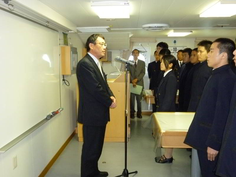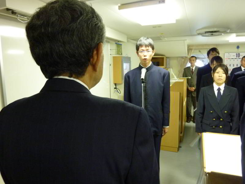 10月24日 出港式 (雨天の為、船内にて)