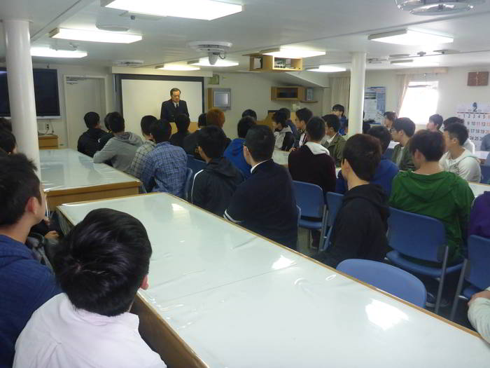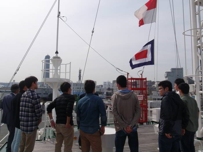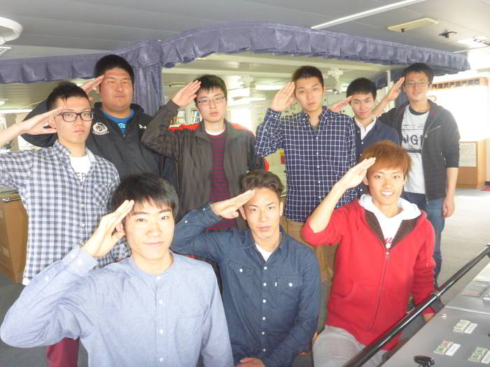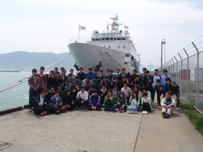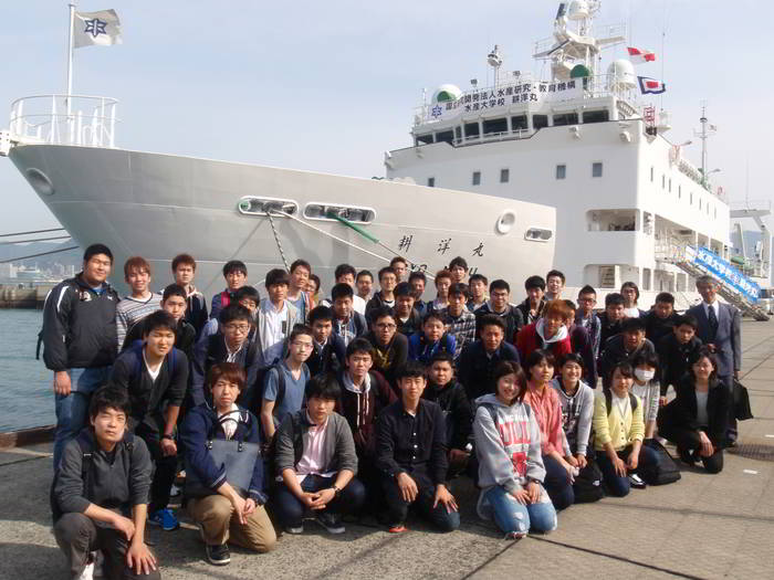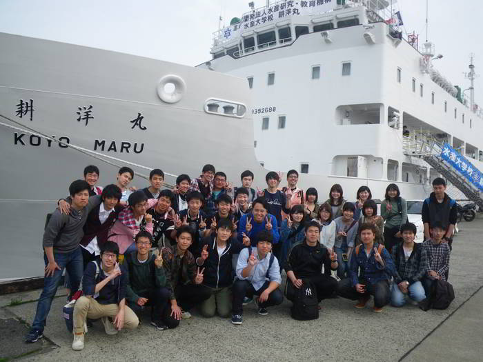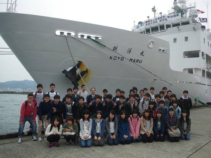 海洋生産管理学科 耕洋丸を背景に集合写真