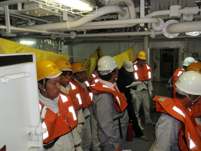 油防除操練 機関長よりありがたい説明