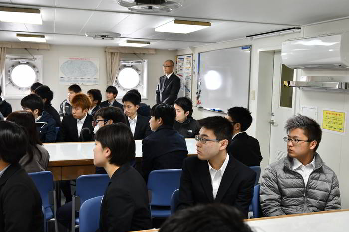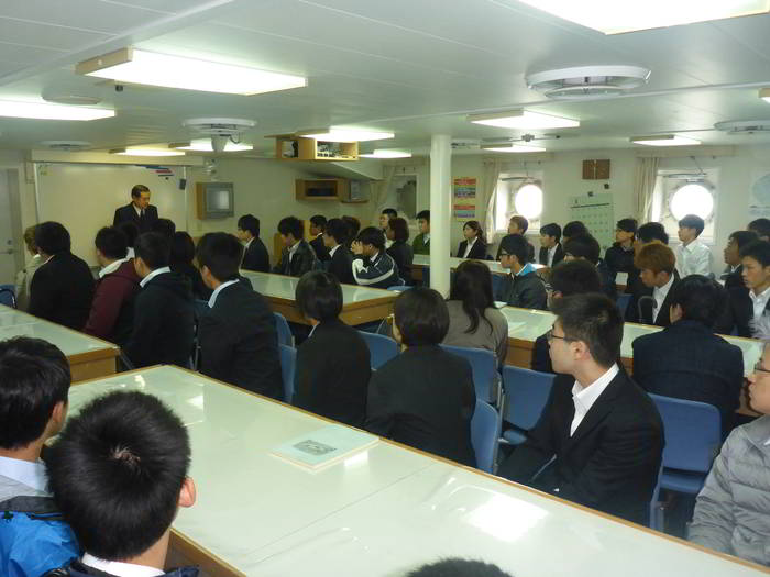 学生教室にて船長挨拶