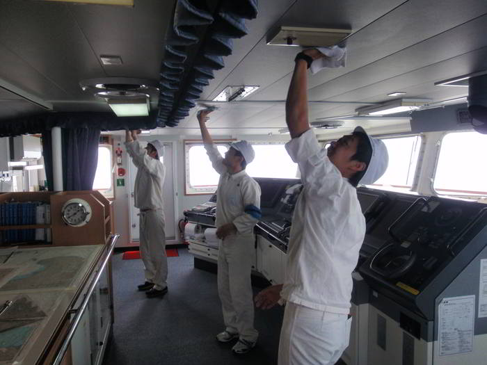 長い実習でお世話になった耕洋丸を船内清掃