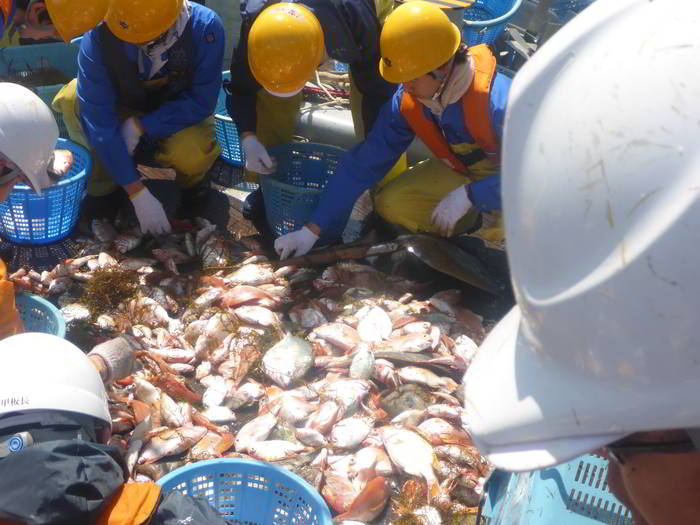 入網した漁獲物を計測