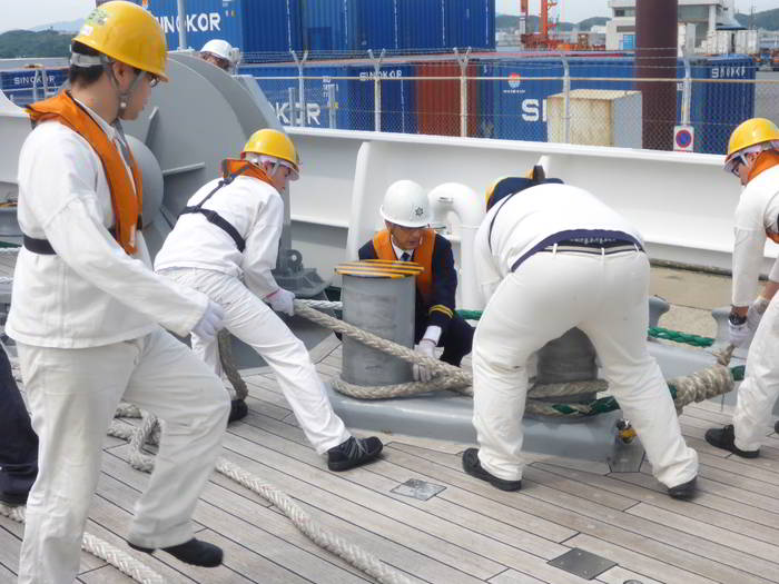出港作業に取り組む実習生