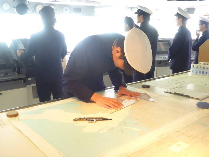 狭い航路では頻繁に位置を確認しながら航行