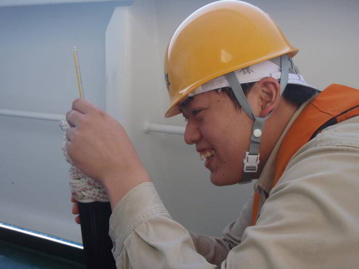 笑顔で水温計測中!