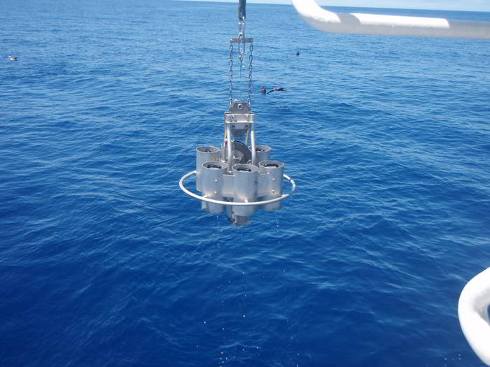 桓武海山にて採泥器を使用した海洋観測実習
