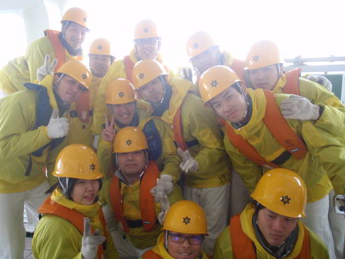 出港作業後に集合写真