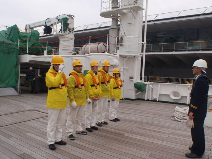 出港配置につく実習生
