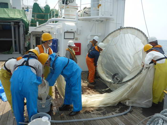 マグロの稚魚、卵を探します