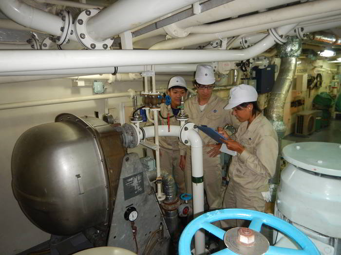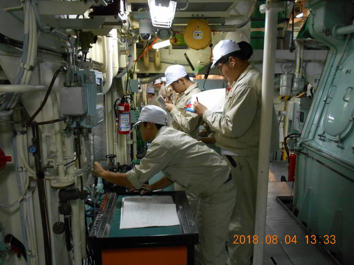 乗船してまずは機関室配置図を作成します