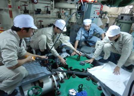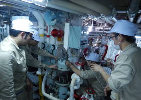 主機関燃料油精密濾し器開放・掃除