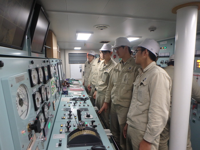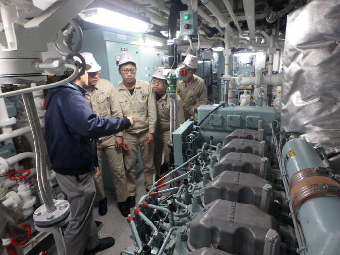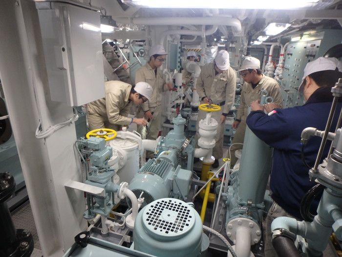 出港前に主機関運転の準備をします。