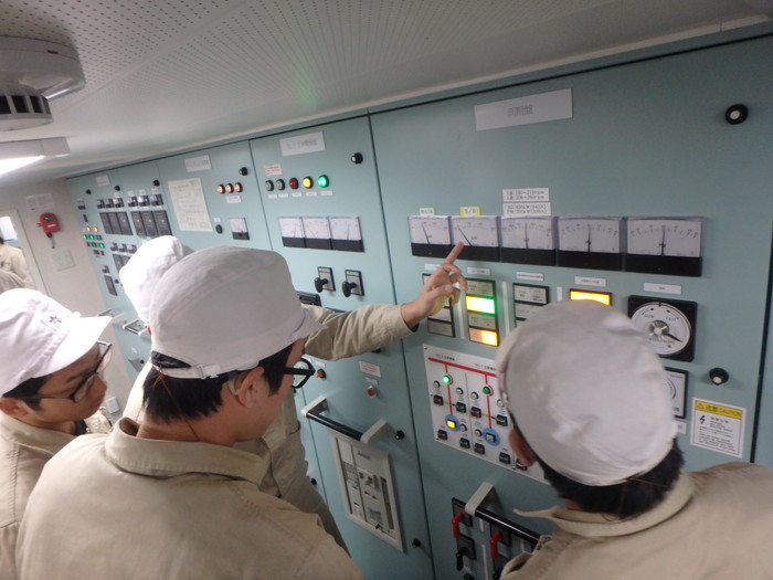 制御盤で機関室内に異常が無いか監視します。