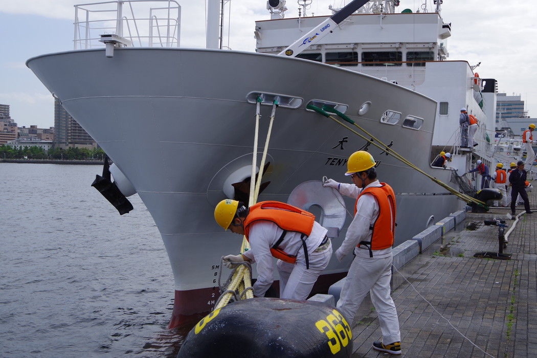 水産庁漁業取締船「東光丸」に訪船。
