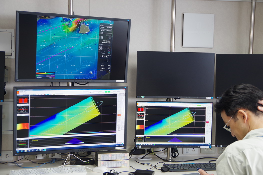 マルチナロー海底探査装置で航路における海底の様子を調べています。
