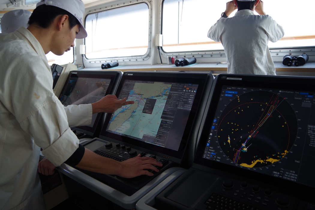 レーダーやECDISなどの航海計器の操作も積極的に行い、機能を確認します。