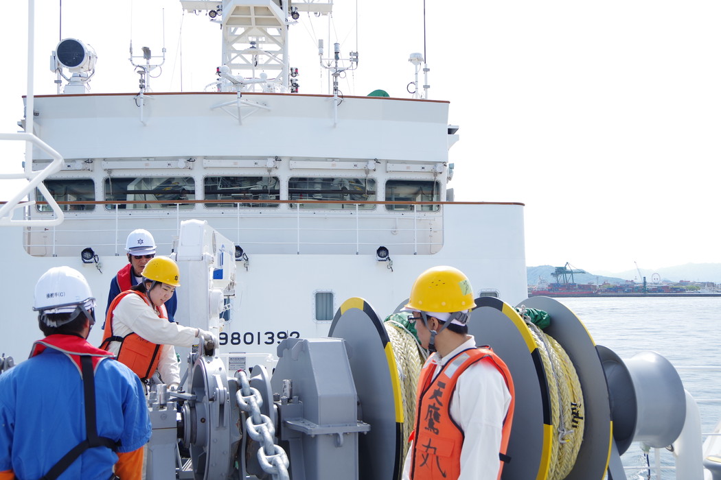 高松港へ入港。係船機や揚錨機の使い方も覚えます。