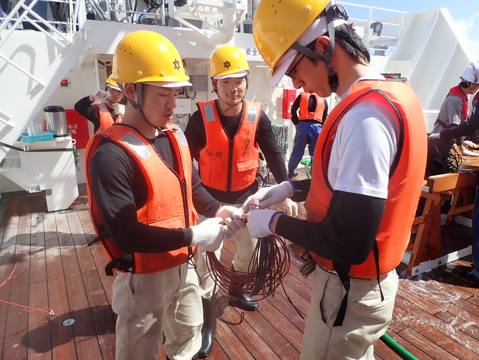 機関学生は絡んだ枝縄の修繕を担当。