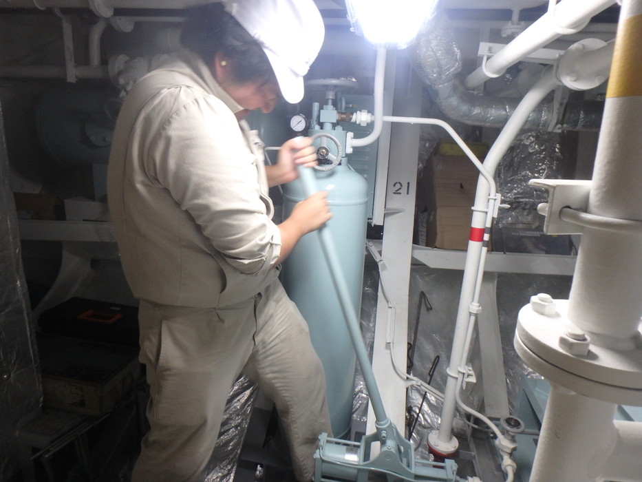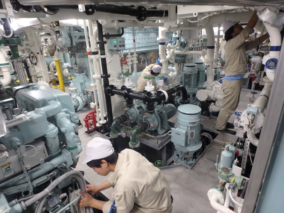 パラオ入港前に機関室内の掃除を行いました。
