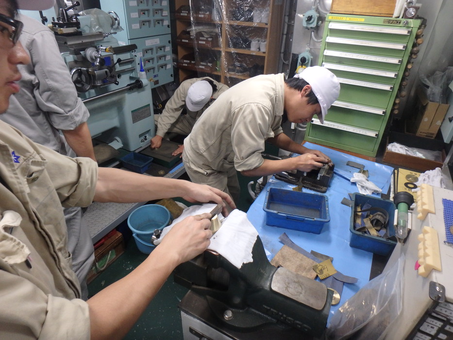 自分達で作った多機能文鎮の磨き作業を行いました。