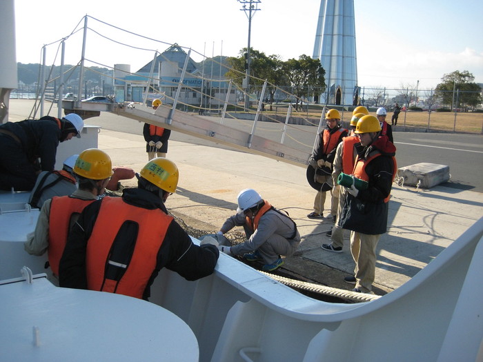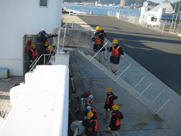 | 出入港の配置前に見廻りの注意点を教わりました。 |