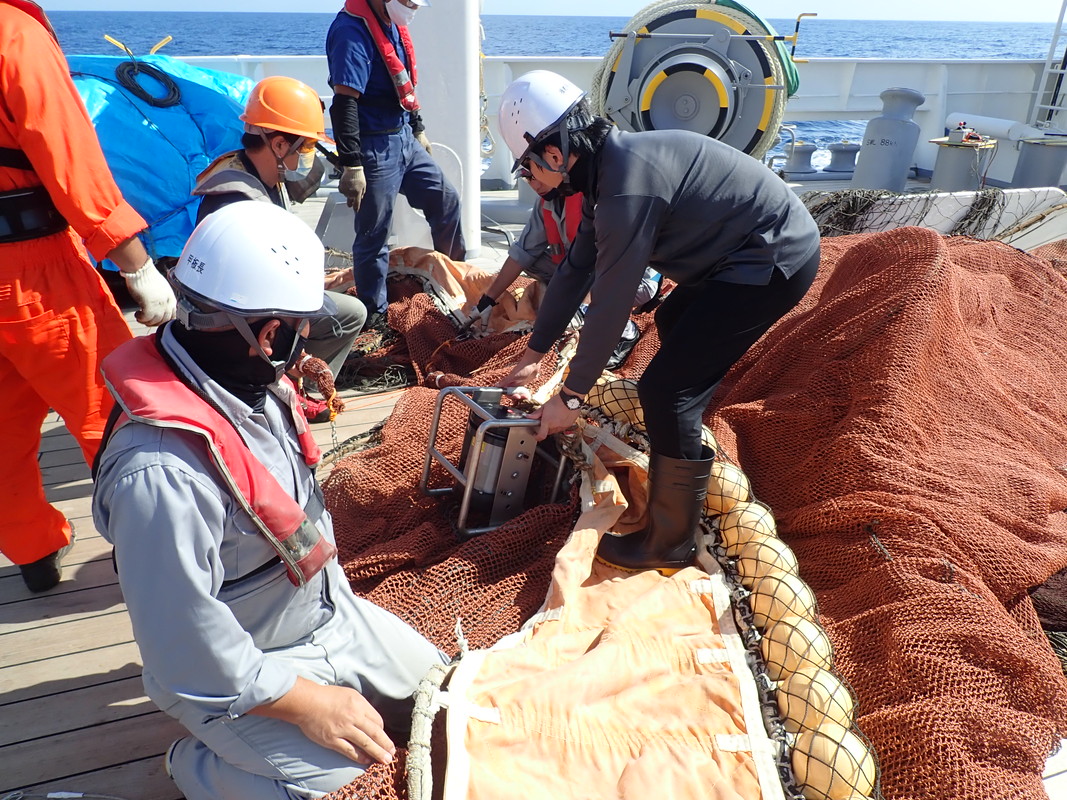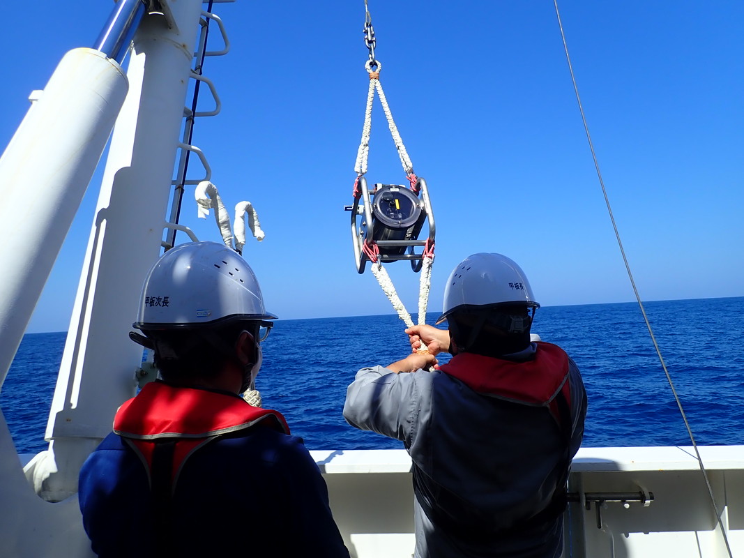 大型クラゲの分布深度を把握するために、