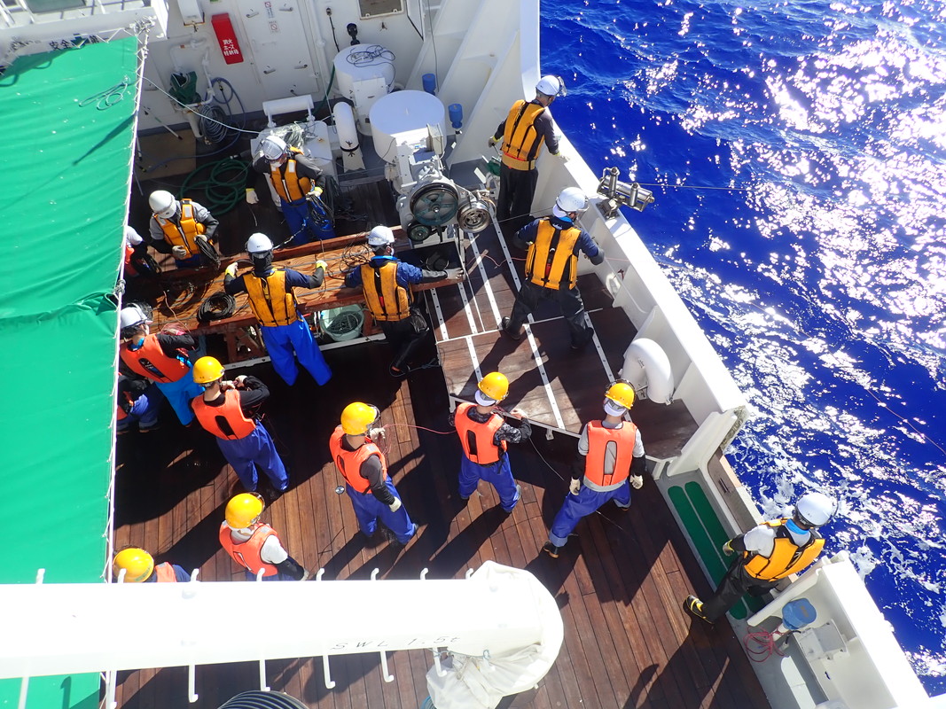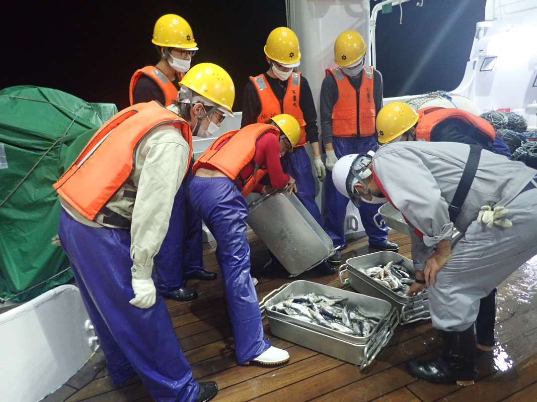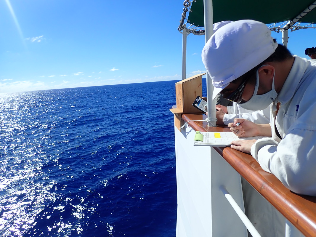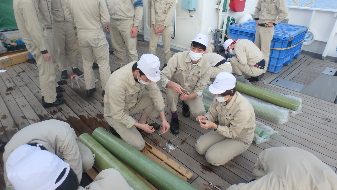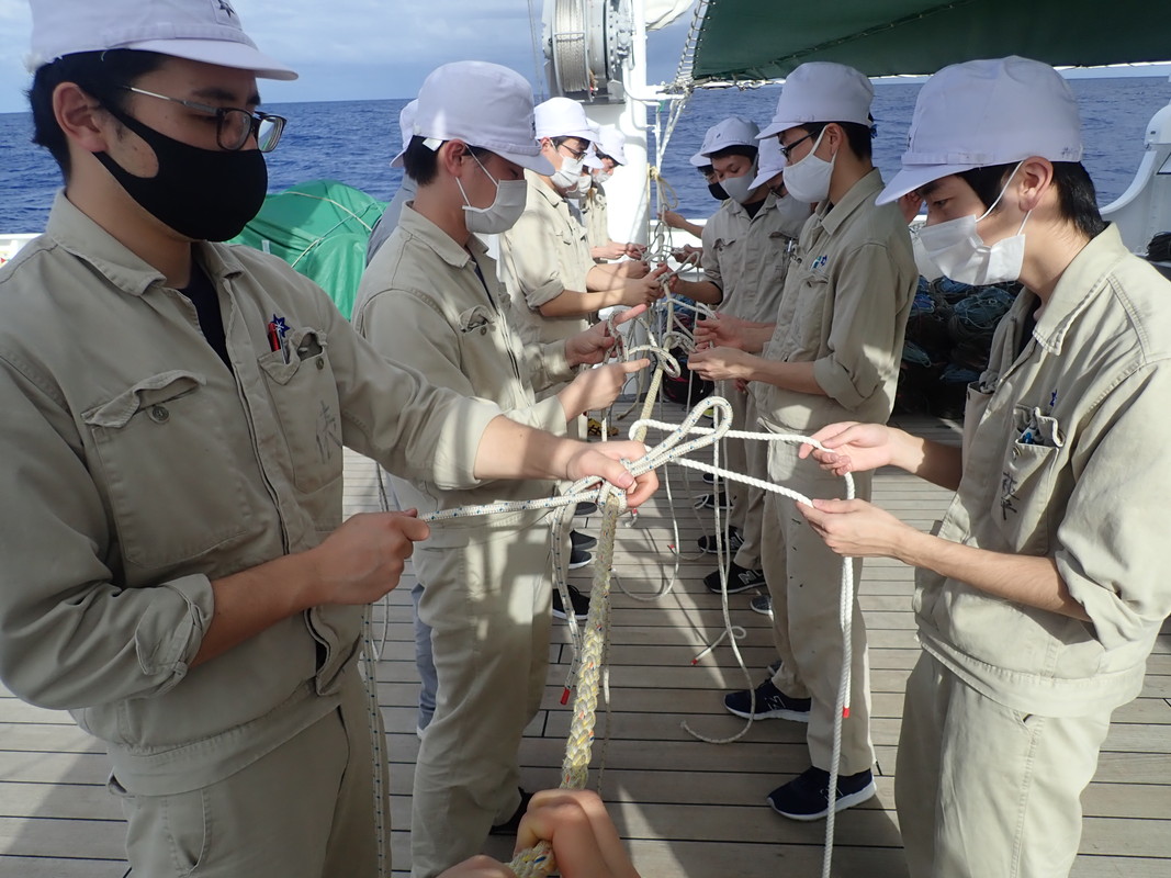 操業中、船橋では縄回りと野帳の記入を行いました。