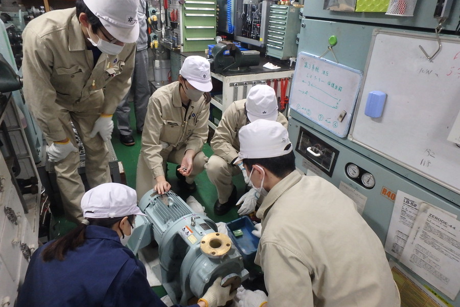 実習用電動機、ポンプの解放及び組立実習を実施しました