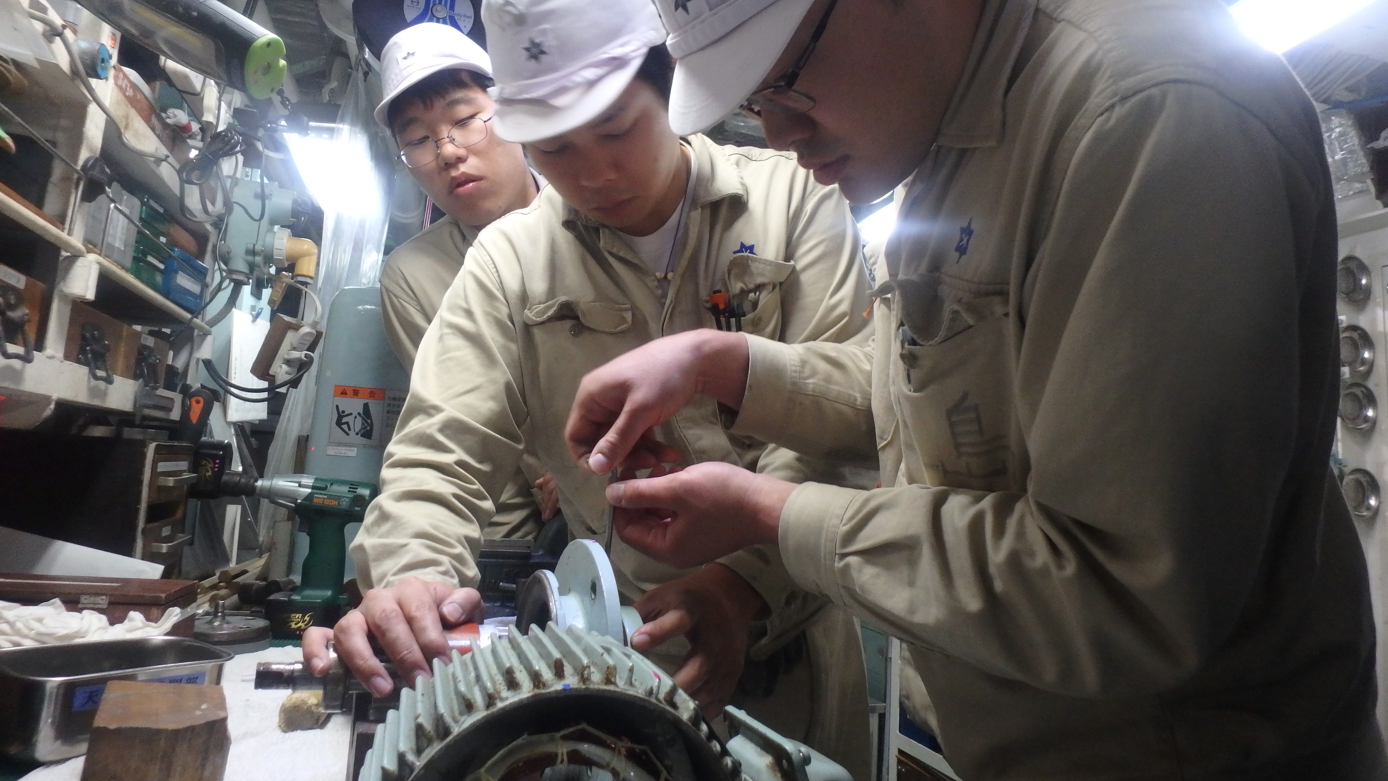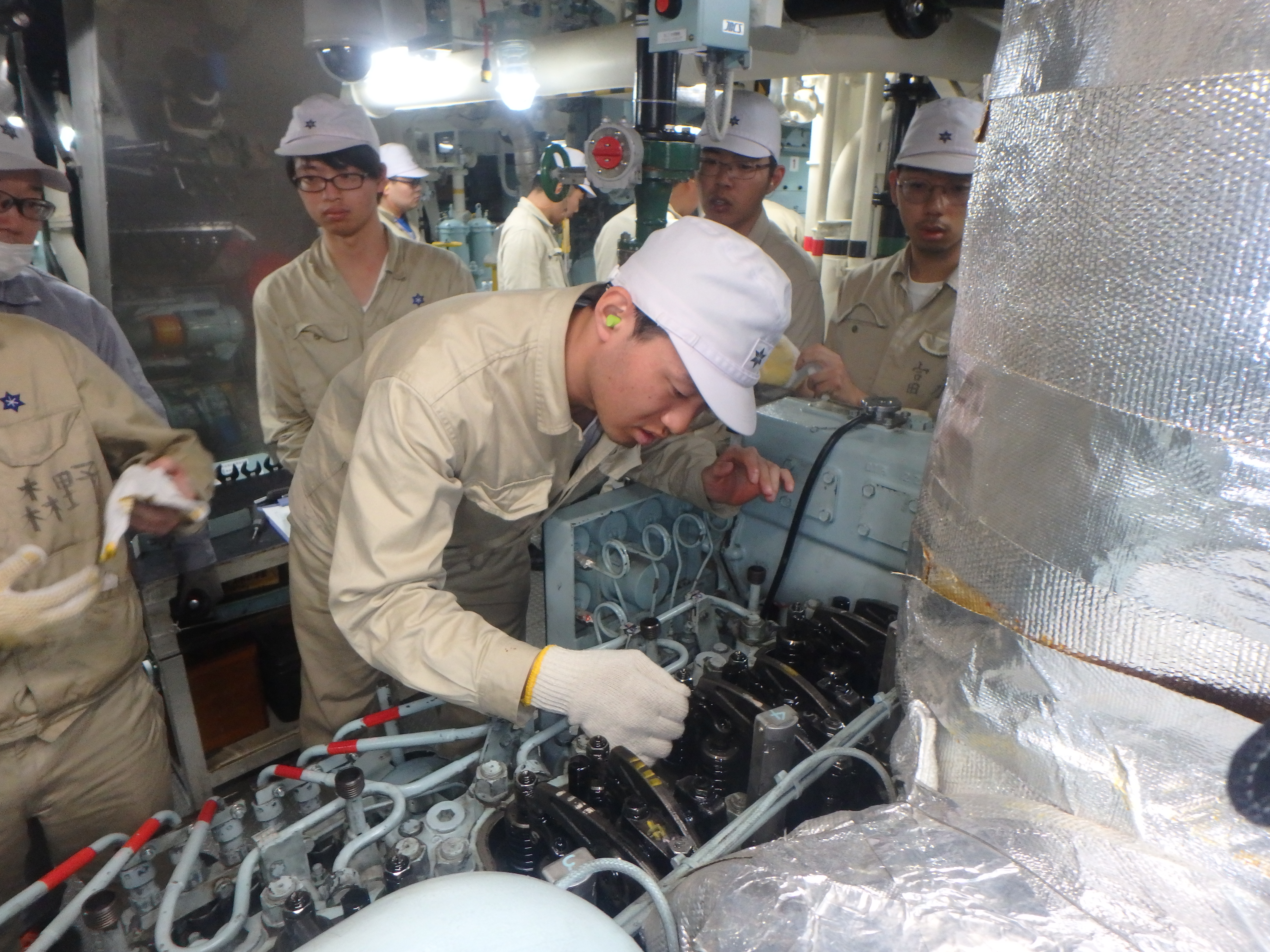 機関実習にて発電機関のタペットクリアランス調整を行いました。