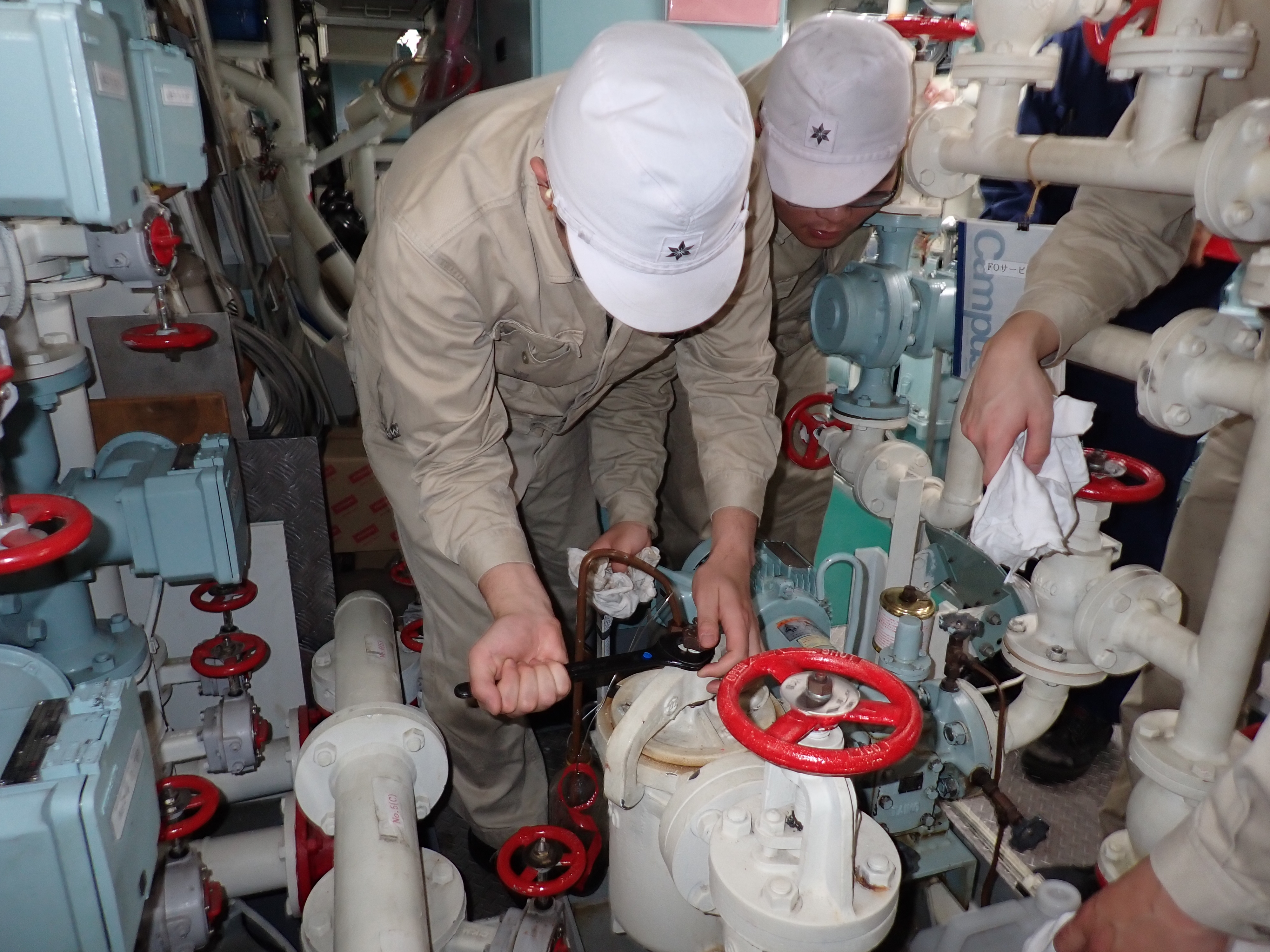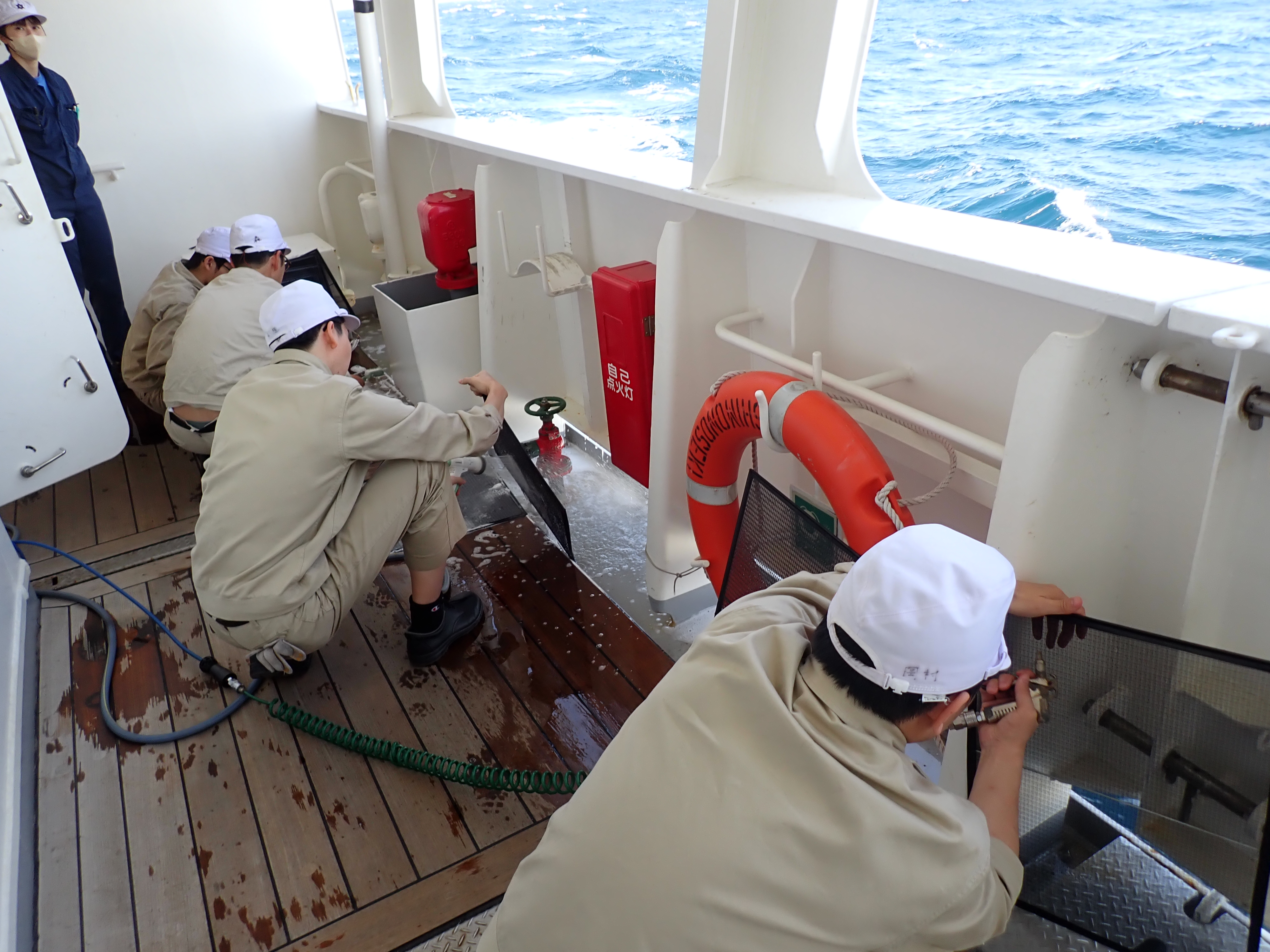 機関実習にて船外の消火栓の交換作業を行いました。