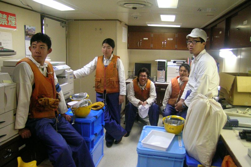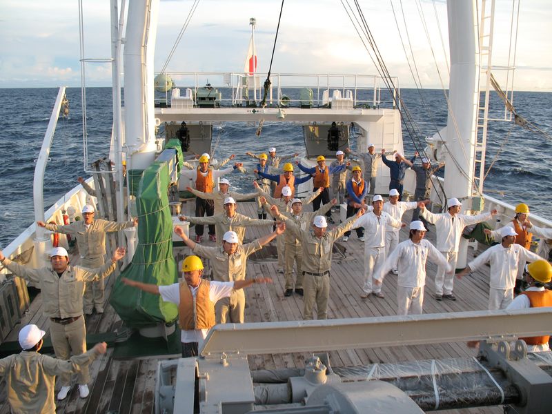 学生・調査員・乗組員一斉にラジオ体操! |