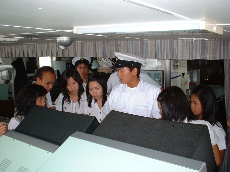 タイ・カセサート大学生に船内説明中 |