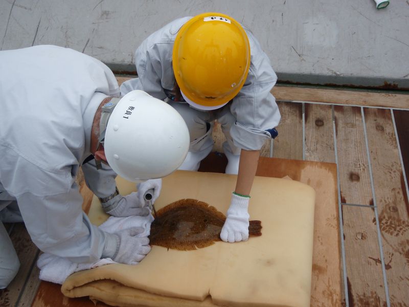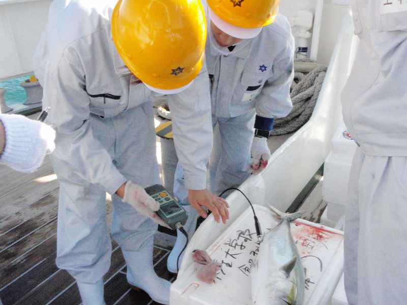 | 鰤を絞め、魚体の鮮度を保持します。 |