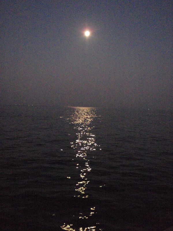 | 佐伯湾の夜明け前、太陽のような満月 |