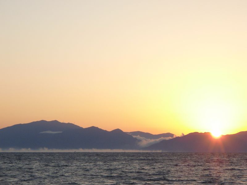 伊予灘 山の雲海から漏れだした霧と朝日 |