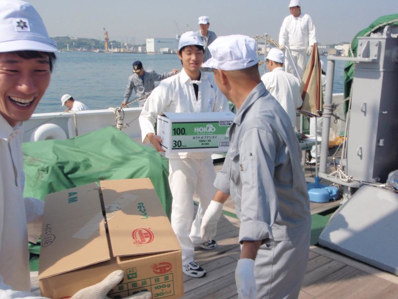 遠洋航海に向け大量の食糧を積み込み