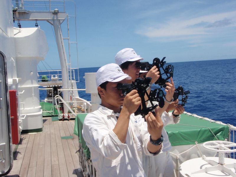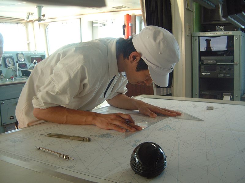大切な船位確認を行っています。